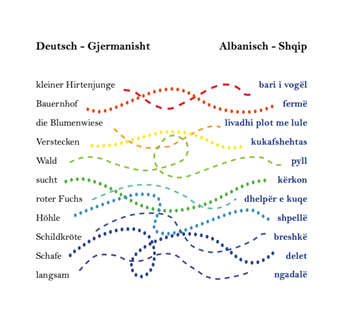 Jede illustrierte Doppelseite vereint einen deutschen und einen albanischen Satz. Die interlineare Darstellung mit fett markierten Schlüsselwörtern stärkt gezielt die Lese- und Lernkompetenz mehrsprachiger Kinder.